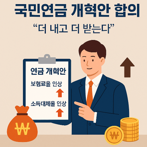 현재 국민연금 보험료율은 **소득의 9%**이지만, 개혁안에서는 이를 15%까지 인상하는 방안을 포함하고 있다. 이렇게 되면 직장인 기준으로 월급에서 빠져나가는 연금 보험료가 늘어나게 된다.